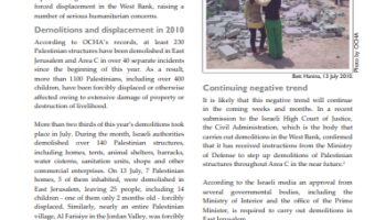 In October 2010, UN OCHA released a factsheet that addresses the ongoing attempts to evict Palestinian families from their homes in Sheikh Jarrah in East...