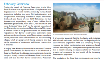 During February 2009, Palestinians in the West Bank faced the most significant threat of displacement and dispossession of recent months. The blockade...